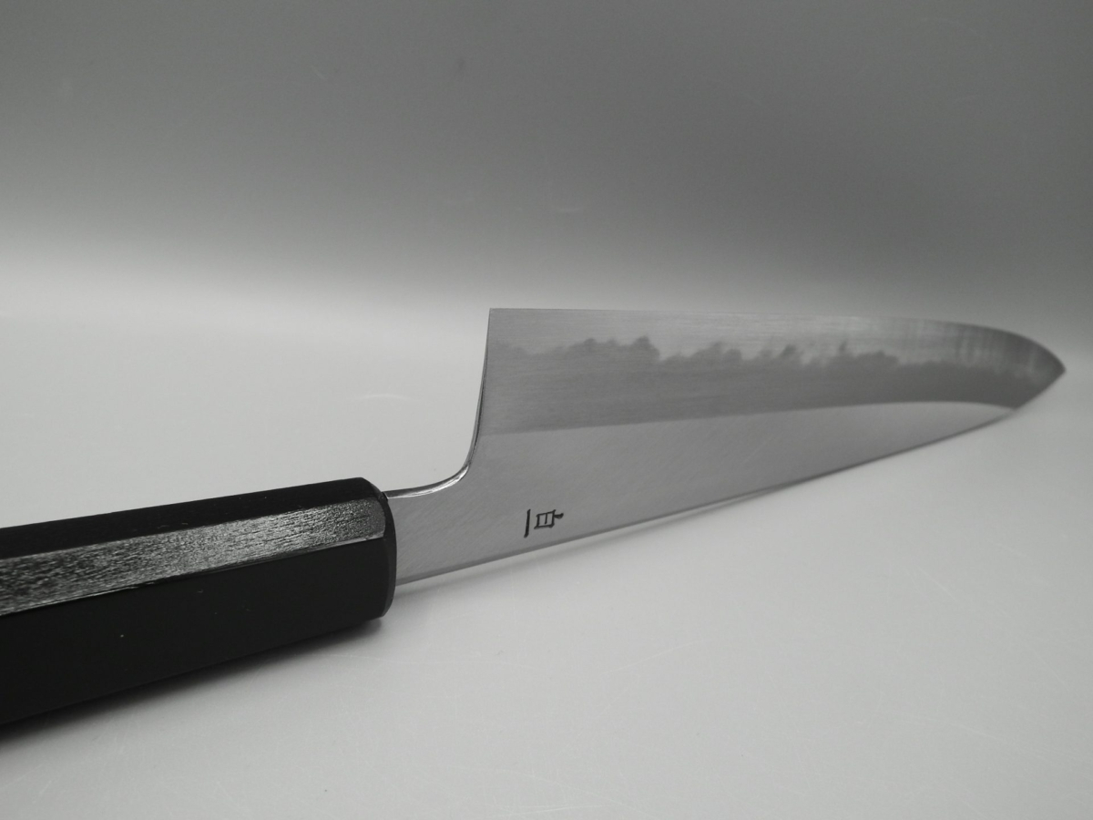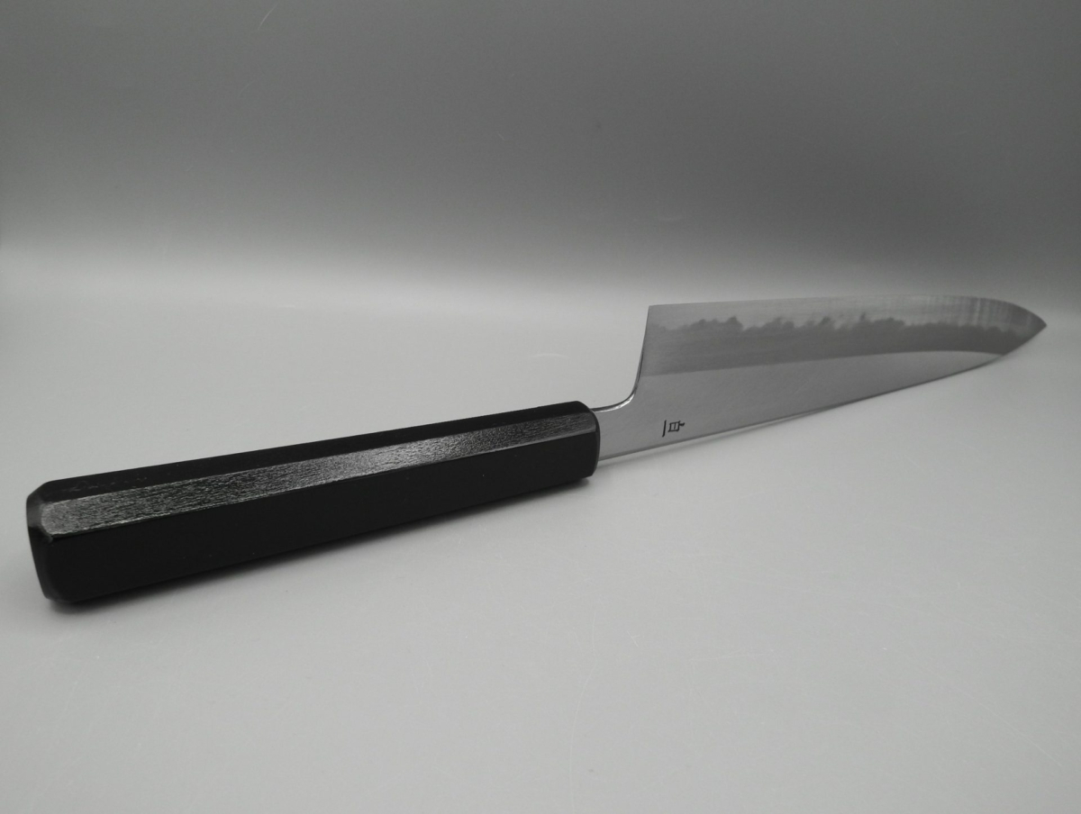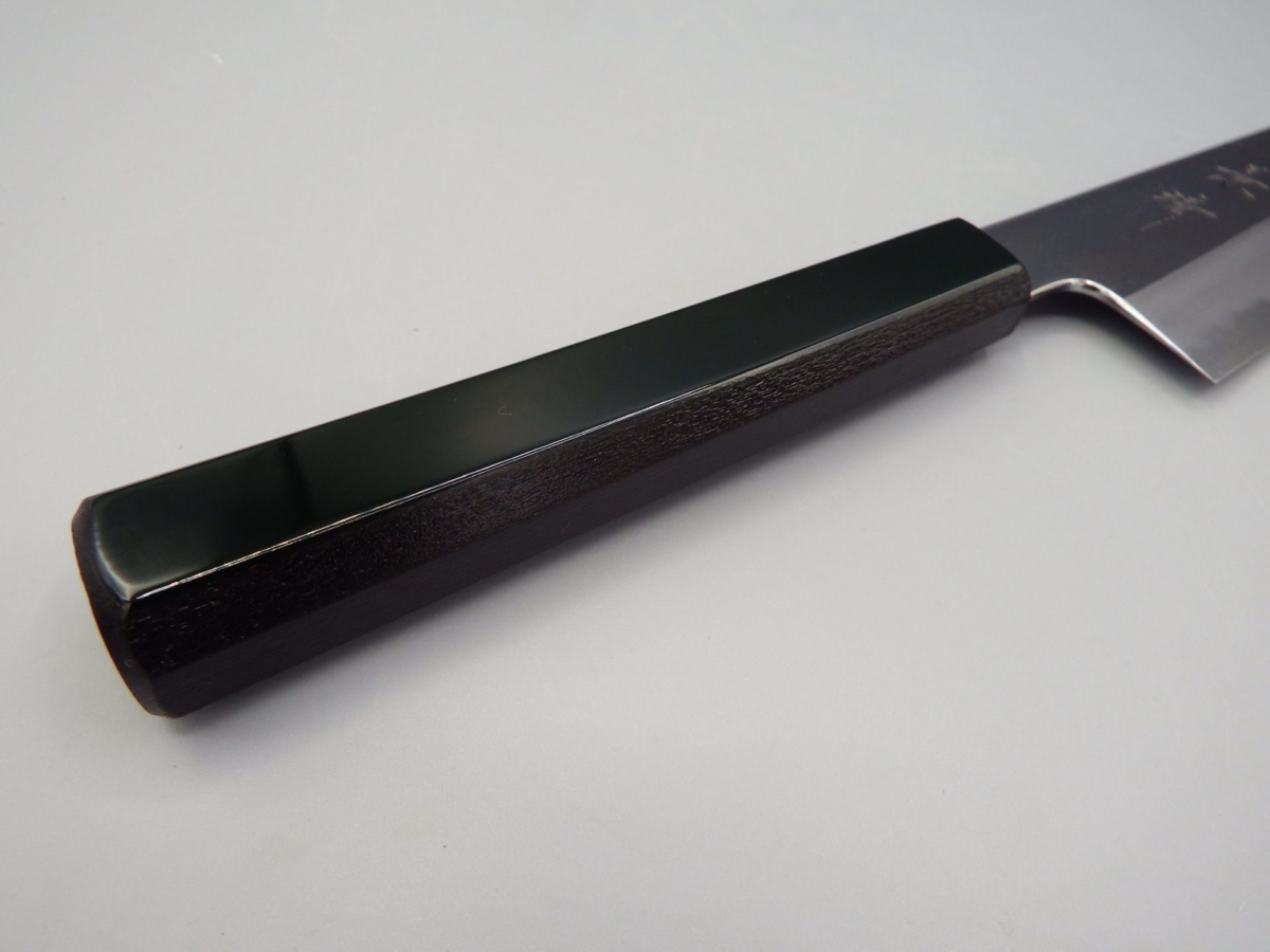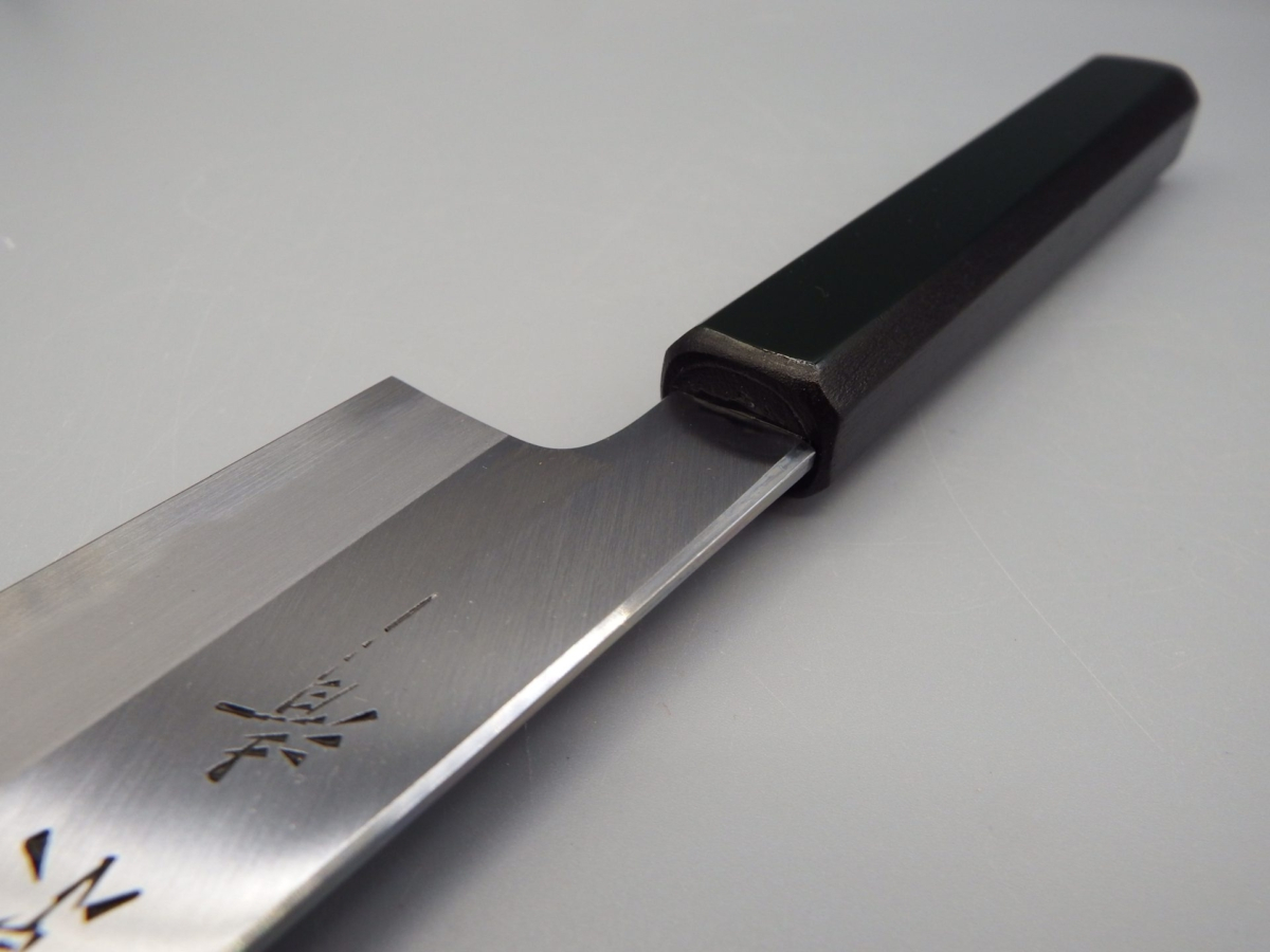 Il Gyuto è un coltello molto versatile. Infatti, può essere usato per tagliare carne, pesce e verdura, risultando adatto alle esigenze della cucina occidentale. Molto leggero e sottile, è il classico coltello da chef. Ideale per il taglio a julienne, per tritare verdure (brunoise, matignon e mirepoix) ed erbe aromatiche. Utilissimo per tartare di pesce e di carne. Questa versione presenta un manico in legno di magnolia laccato verde scuro con la tradizionale tecnica giapponese chiamata “urushi-nuri”. La colorazione prevede l’utilizzo della linfa estratta dalla pianta autoctona Rhus Verniciflua che conferisce al manico longevità, impermeabilità e resistenza, oltre a renderlo esteticamente accattivante. Il coltello è disponibile in due misure opzionabili 210 e 240 mm. Nella misura 240 mm è anche possibile selezionare la versione in stile kiritsuke (a punta tagliata).