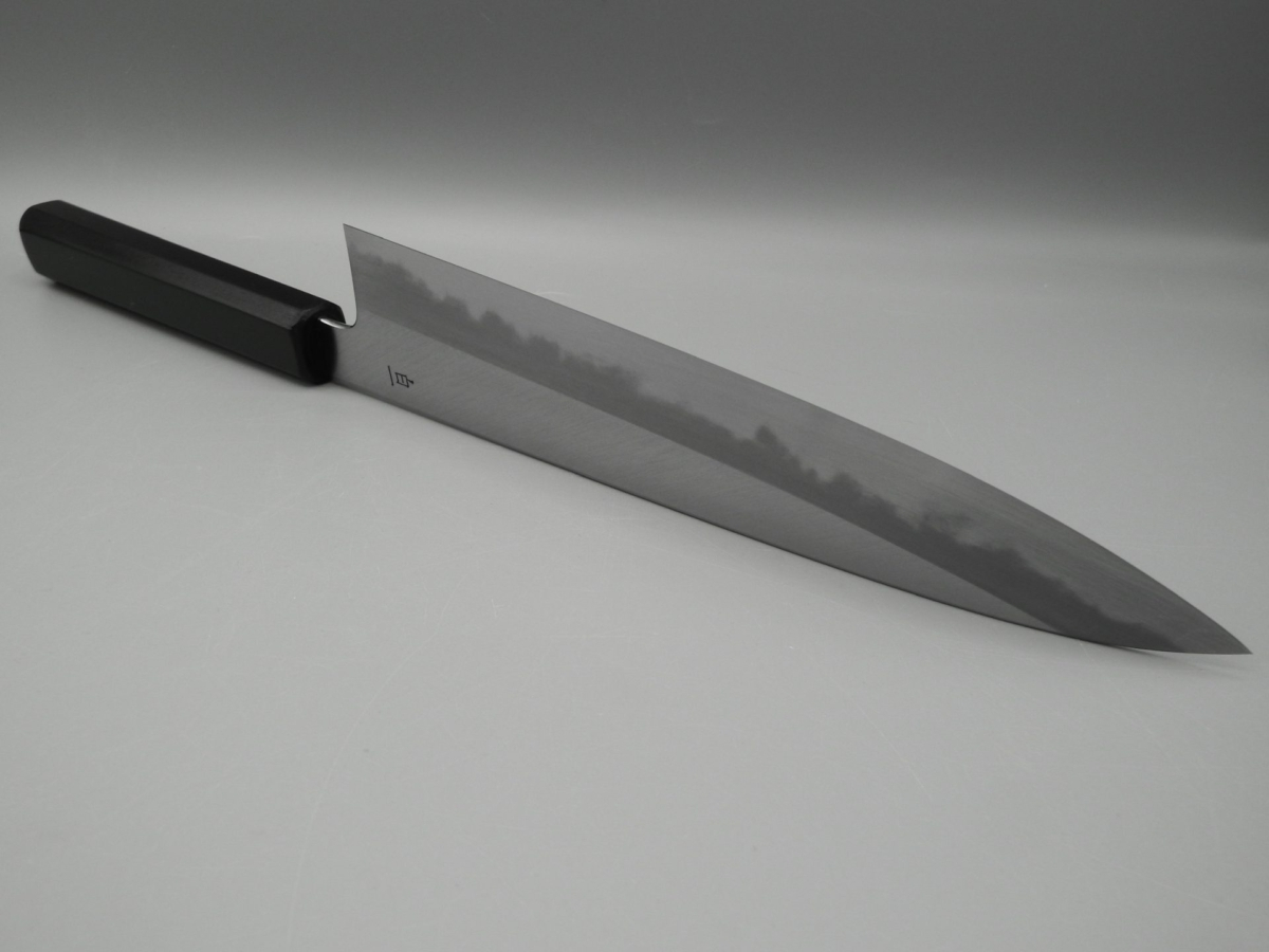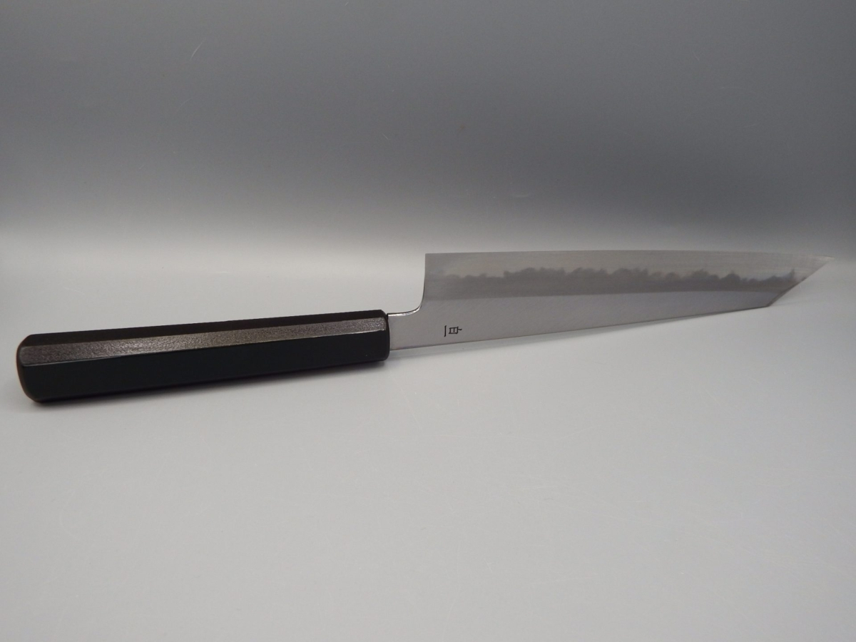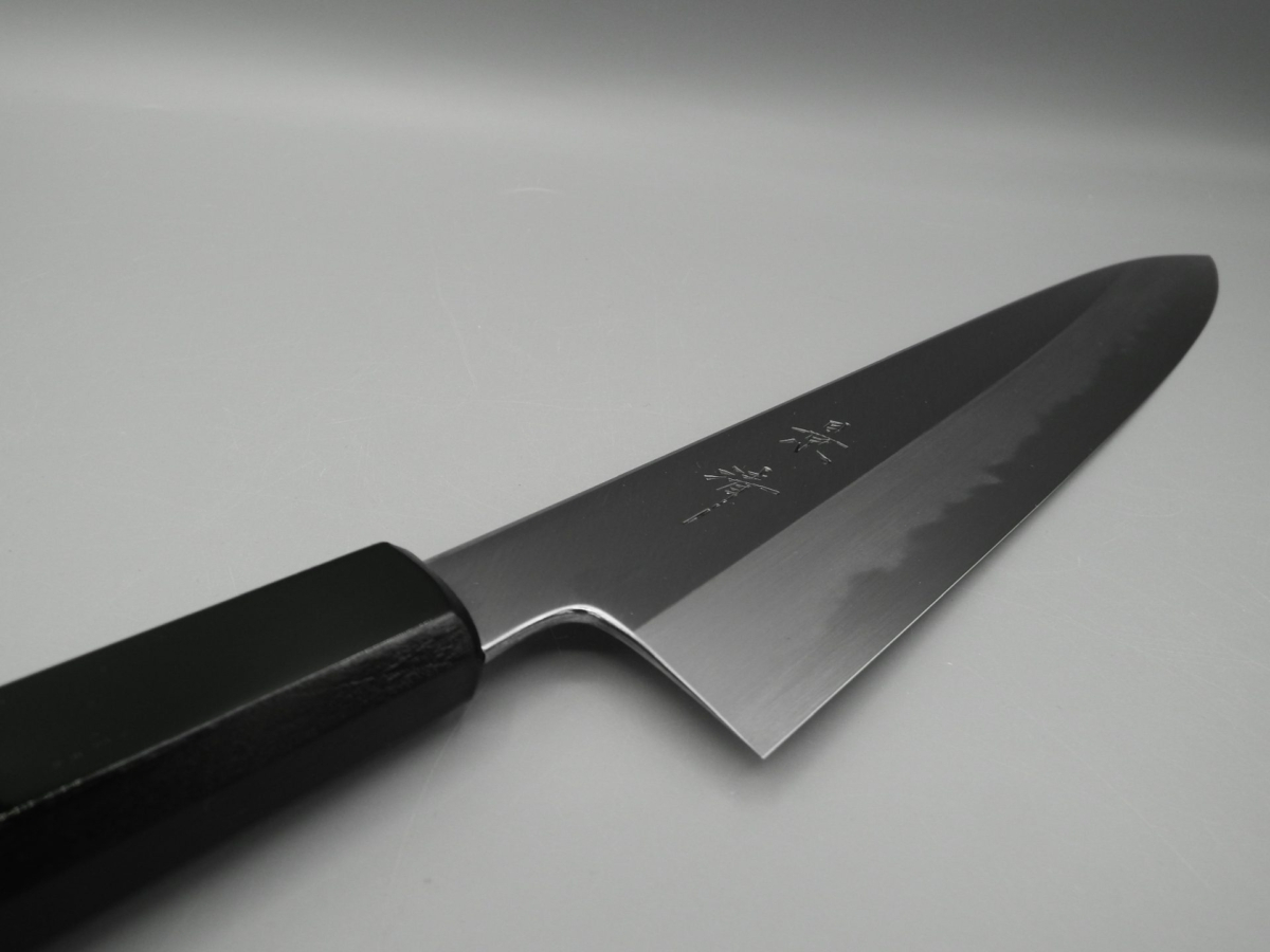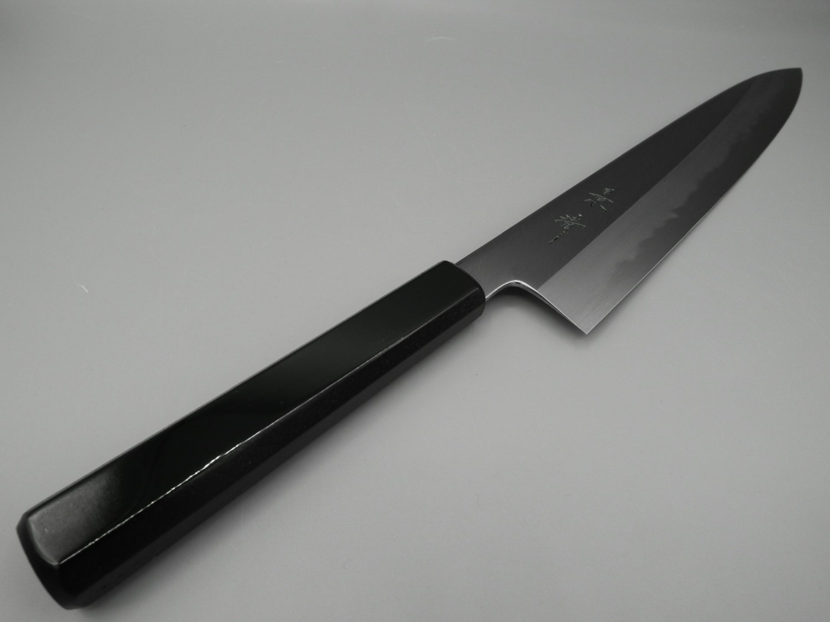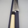 Il Gyuto è un coltello molto versatile. Infatti, può essere usato per tagliare carne, pesce e verdura, risultando adatto alle esigenze della cucina occidentale. Molto leggero e sottile, è il classico coltello da chef. Ideale per il taglio a julienne, per tritare verdure (brunoise, matignon e mirepoix) ed erbe aromatiche. Utilissimo per tartare di pesce e di carne. Questa versione presenta un manico in legno di magnolia laccato verde scuro con la tradizionale tecnica giapponese chiamata “urushi-nuri”. La colorazione prevede l’utilizzo della linfa estratta dalla pianta autoctona Rhus Verniciflua che conferisce al manico longevità, impermeabilità e resistenza, oltre a renderlo esteticamente accattivante. Il coltello è disponibile in due misure opzionabili 210 e 240 mm. Nella misura 240 mm è anche possibile selezionare la versione in stile kiritsuke (a punta tagliata).