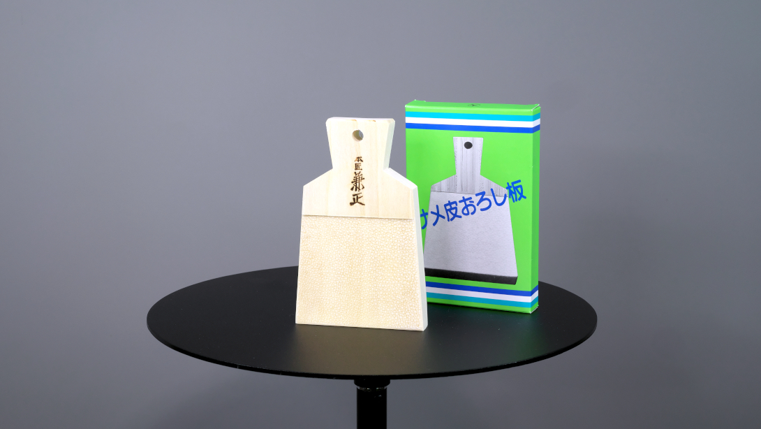 La superficie in pelle di squalo è conciata al bianco, essiccata ed incollata su una tavoletta di legno naturale resistente alla deformazione. I dentelli dermici della pelle di squalo si rivelano perfetti per sminuzzare il wasabi senza danneggiarne le cellule, preservandone i nutrienti. Utilizzabile, oltre che per il wasabi, anche per daikon, zenzero ed altro ancora. Disponibile in due misure opzionabili, medium e large.