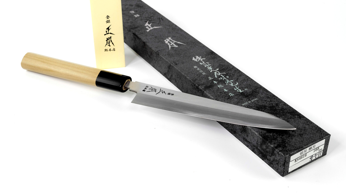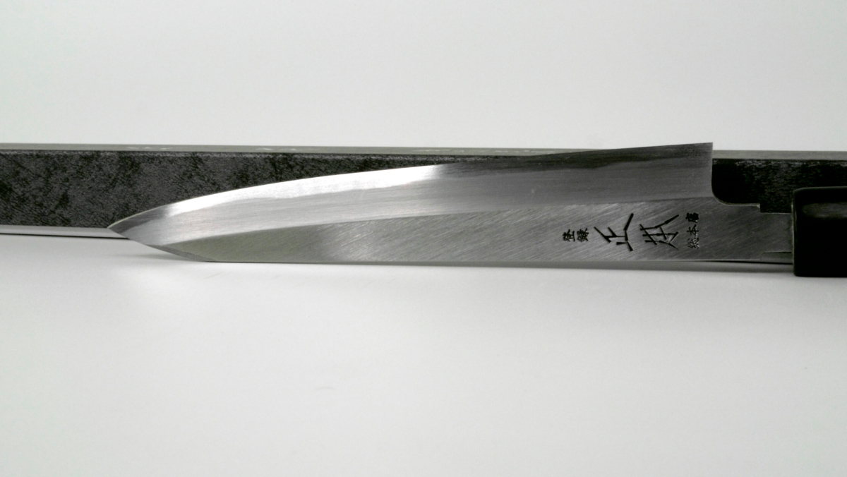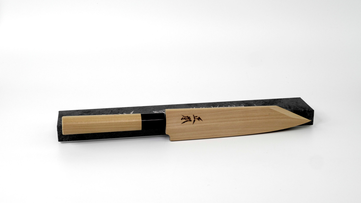 A differenza dello Yanagiba, presenta una lama più dritta che lo rende adatto anche al taglio delle verdure. Noto anche come Kensaki o Kengata Yanagiba: Ken significa “spada” e Saki “punta” (in effetti il profilo di questo coltello ricorda quello delle spade giapponesi). Questo baby Yanagiba kiritsuke in particolare, presenta una punta precisa, adatta per incisioni e lavori decorativi. La lama snella e agile è perfetta per lo skinning del pesce e per rimuovere le squame con la tecnica sukibiki. Il coltello è dotato di fodero protettivo in legno di magnolia (Saya in giapponese).