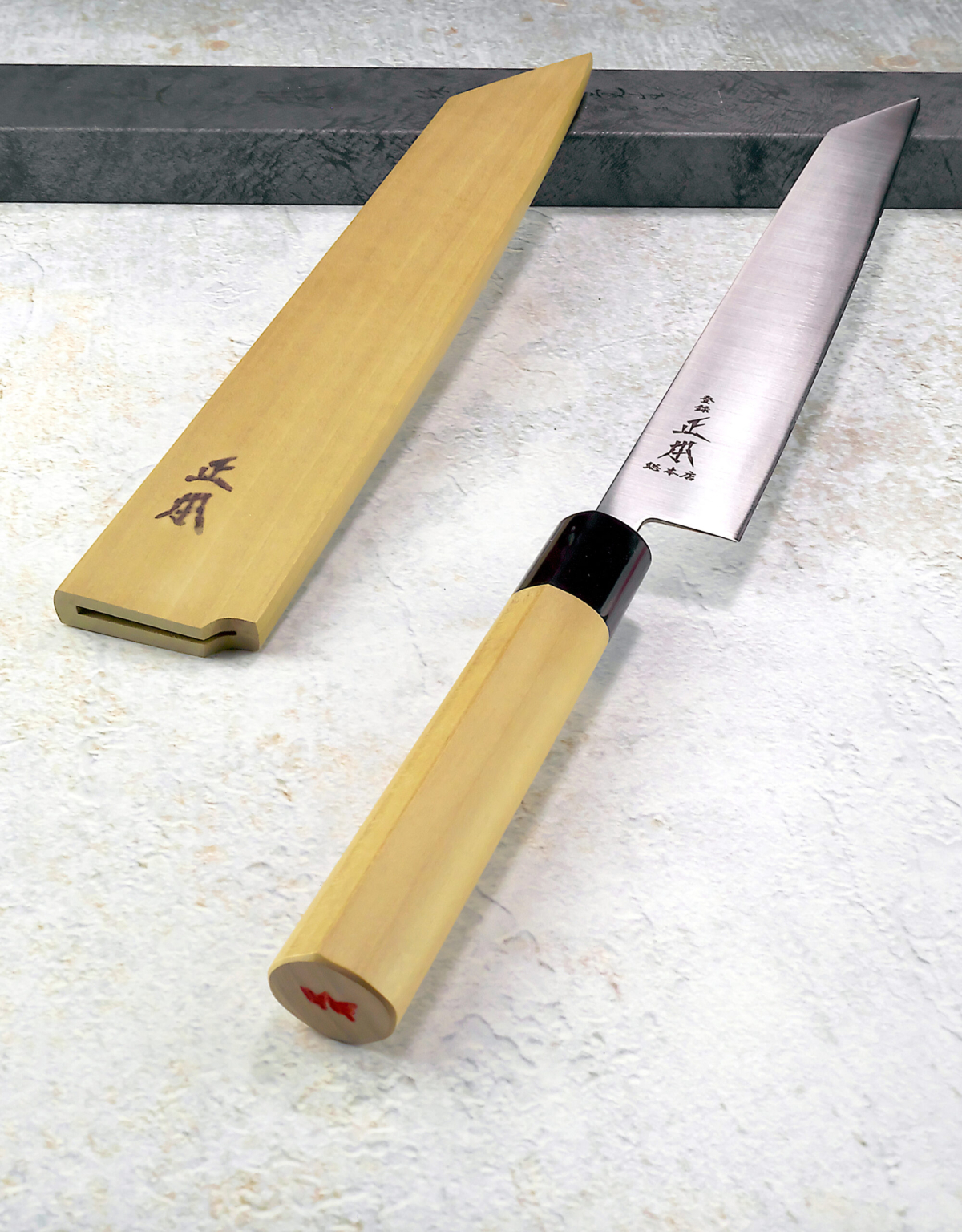 In questa versione, “kiritsuke”, la punta è stata tagliata risultando molto comoda e performante per tutti i tagli delicati che richiedono grande precisione. Questa serie di Masamoto Sohonten impiega un ottimo acciaio al molibdeno-vanadio, resistente all’usura e di facile affilatura. I coltelli sono dotati di fodero protettivo in legno di magnolia (Saya in giapponese). I coltelli Masamoto Sohonten si distinguono per classe ed eleganza, sublimate in una sorprendente semplicità. Tutto è curato nei minimi dettagli, dalle scatole ai manici perfettamente lucidati fino alle lame naturalmente, che offrono una “nitidezza squisita”.