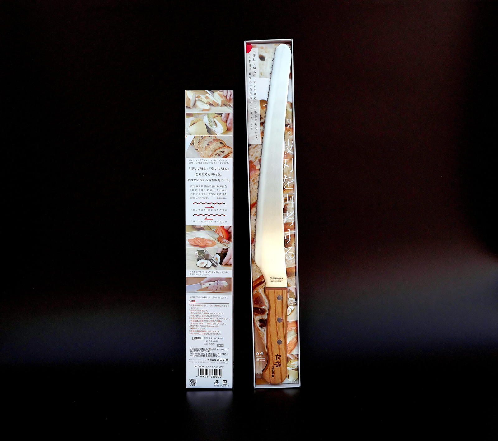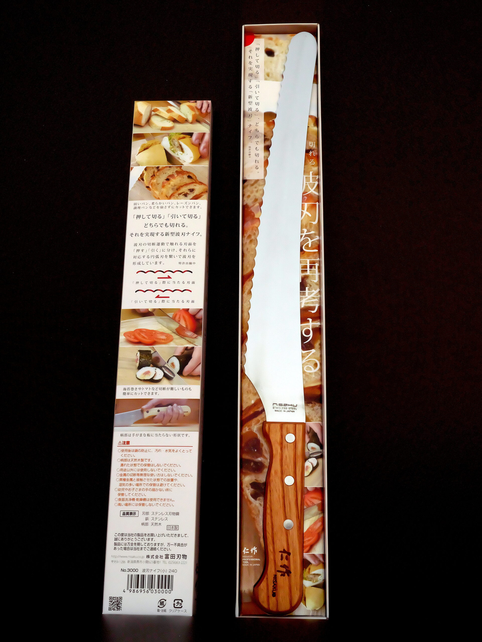 Brand: TOMITA CUTLERY CO. ComparaQuesti coltelli, a lama seghettata, realizzati da TOMITA CUTLERY CO., LTD con sede nella città di Niigata, possono tagliare tutti i tipi di pane, senza sbriciolarlo.