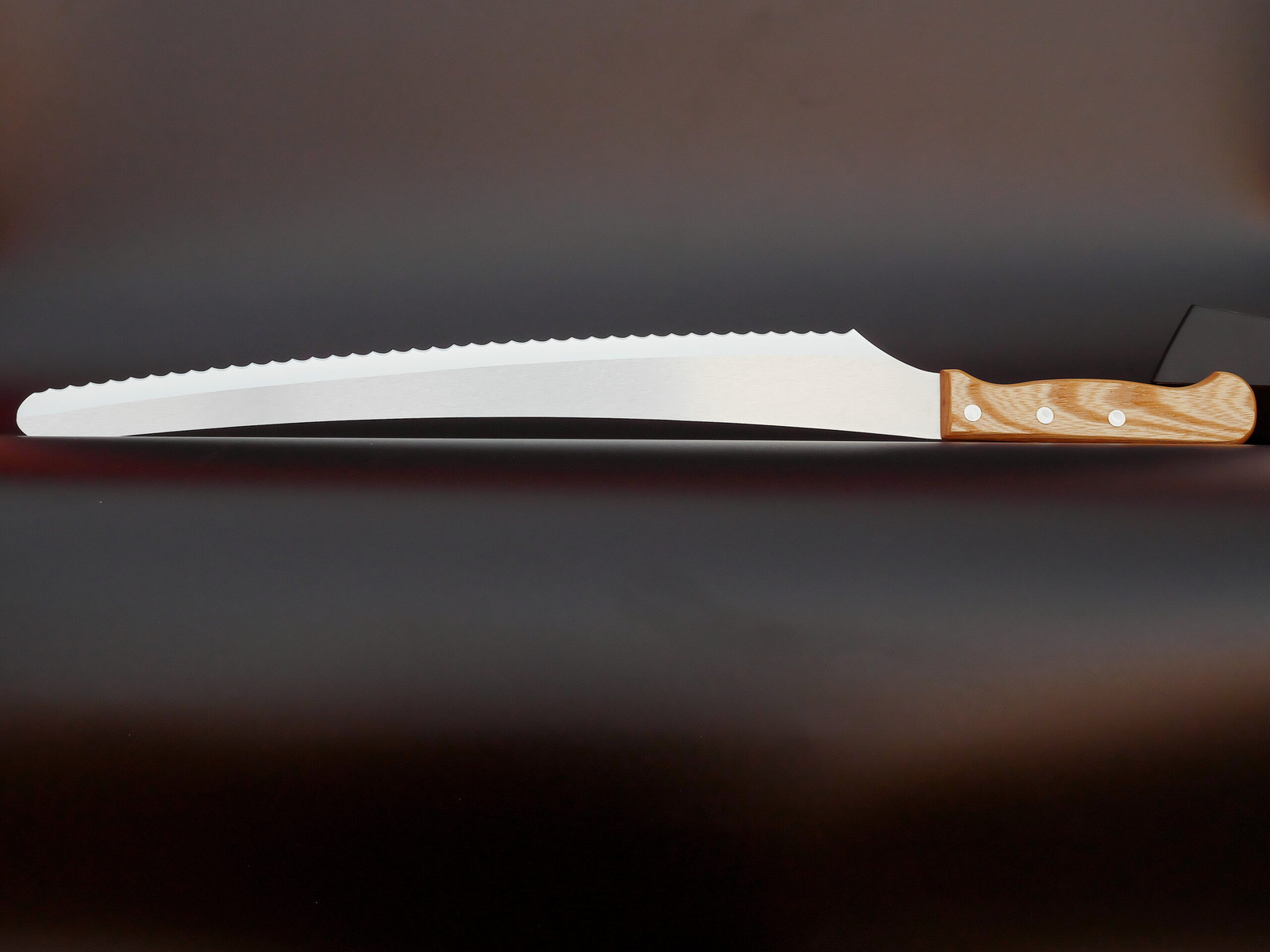 Il coltello da 210 mm si caratterizza per la flessibilità della punta. Il graduale assottigliamento della lama verso la punta, presente solo nella misura più piccola, è una caratteristica intenzionale di progettazione: la lama è stata resa volutamente sottile verso la punta per fornire il giusto spessore che serve per affettare con precisione anche torte e altri cibi morbidi. La struttura affusolata e a spessore graduale del 210 mm, è pertanto una caratteristica del design del prodotto. Il breve video che segue mostra questa peculiarità.