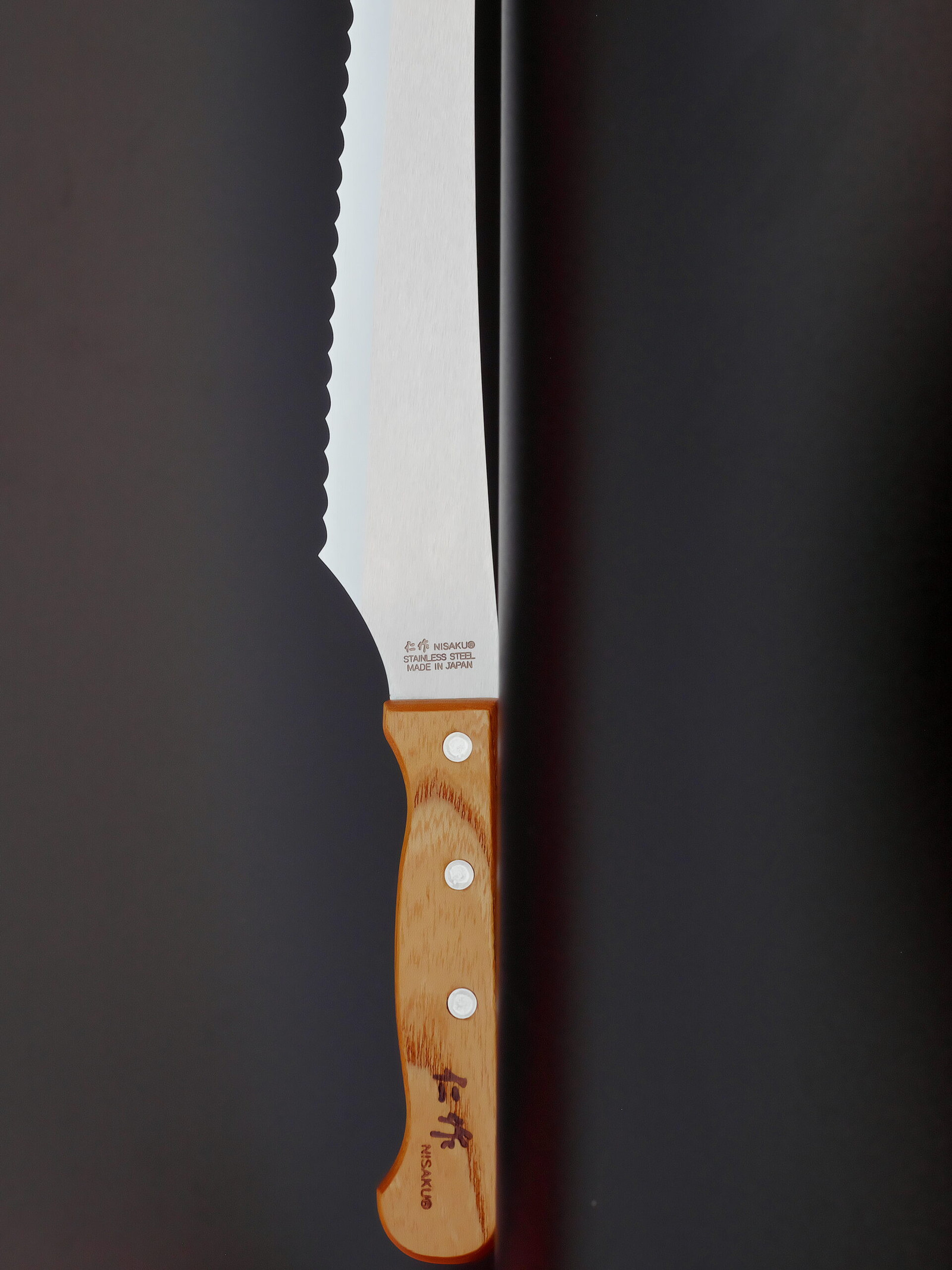 Disponibile in tre misure opzionabili: 240, 300, 360 mm. In Giappone spesso la lunghezza della lama è calcolata dalla punta fino all’attaccatura del manico, come nel caso di questi coltelli Pan-kiri. La misura effettiva del filo tagliente è rispettivamente di 210, 270, 330 mm.