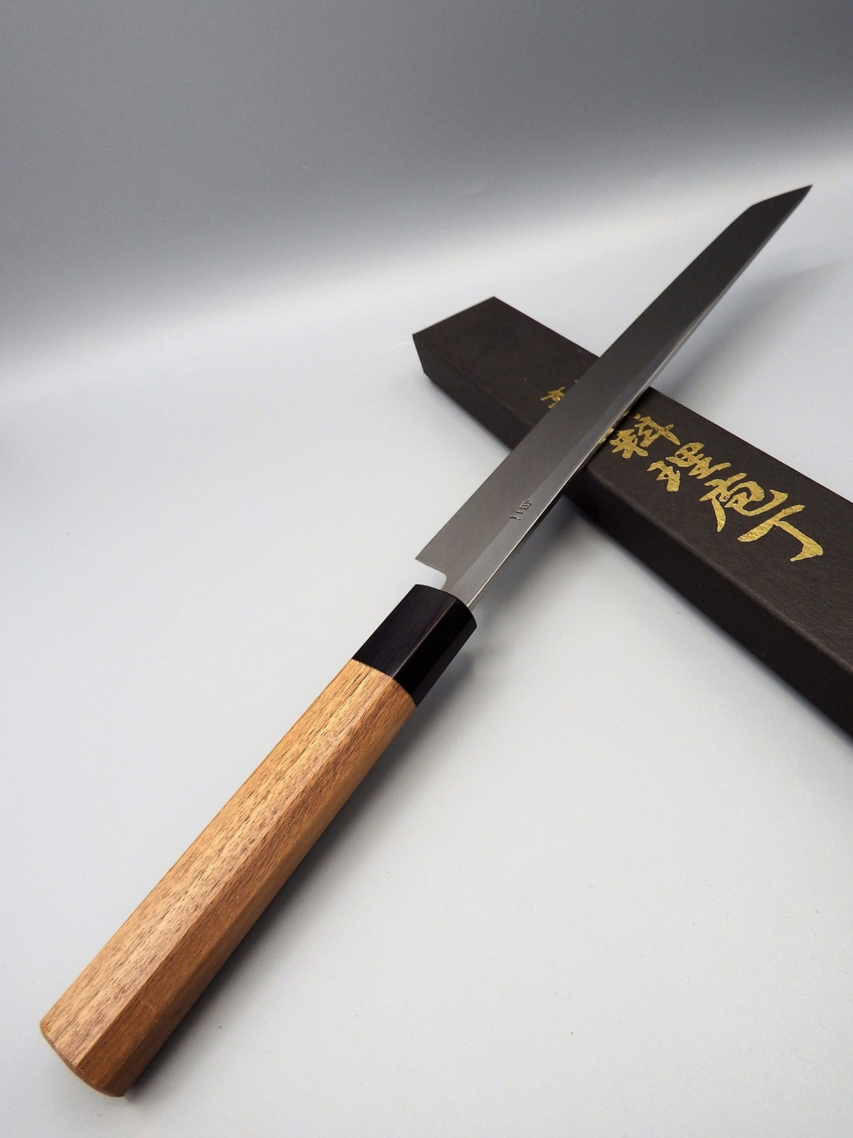 Brand: Sakai Kikumori ComparaSakimaru è la versione a punta arrotondata del classico Takobiki. La sua forma caratteristica lo rende particolarmente somigliante alla classica katana giapponese.