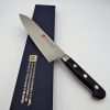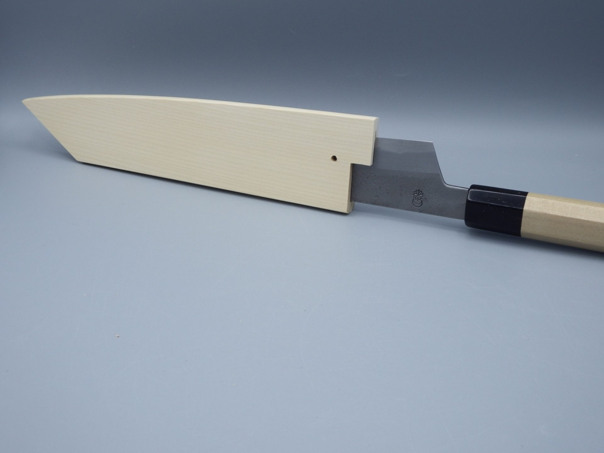 Questo Wa Gyuto è costruito con la tecnica San-mai (3 strati): il cuore in acciaio shirogami#2 è rivestito da due strati di ferro dolce. Solo pochi fabbri continuano a forgiare interamente a mano questo tipo di coltello. Infatti, lo spessore estremamente sottile della lama, ne rende difficile la realizzazione. Essendo un coltello in acciaio al carbonio, è sensibile all’ossidazione. Si raccomanda quindi di pulirlo spesso (con una spugna o panno umido) durante l’utilizzo e di asciugarlo accuratamente prima di riporlo a fine lavoro.