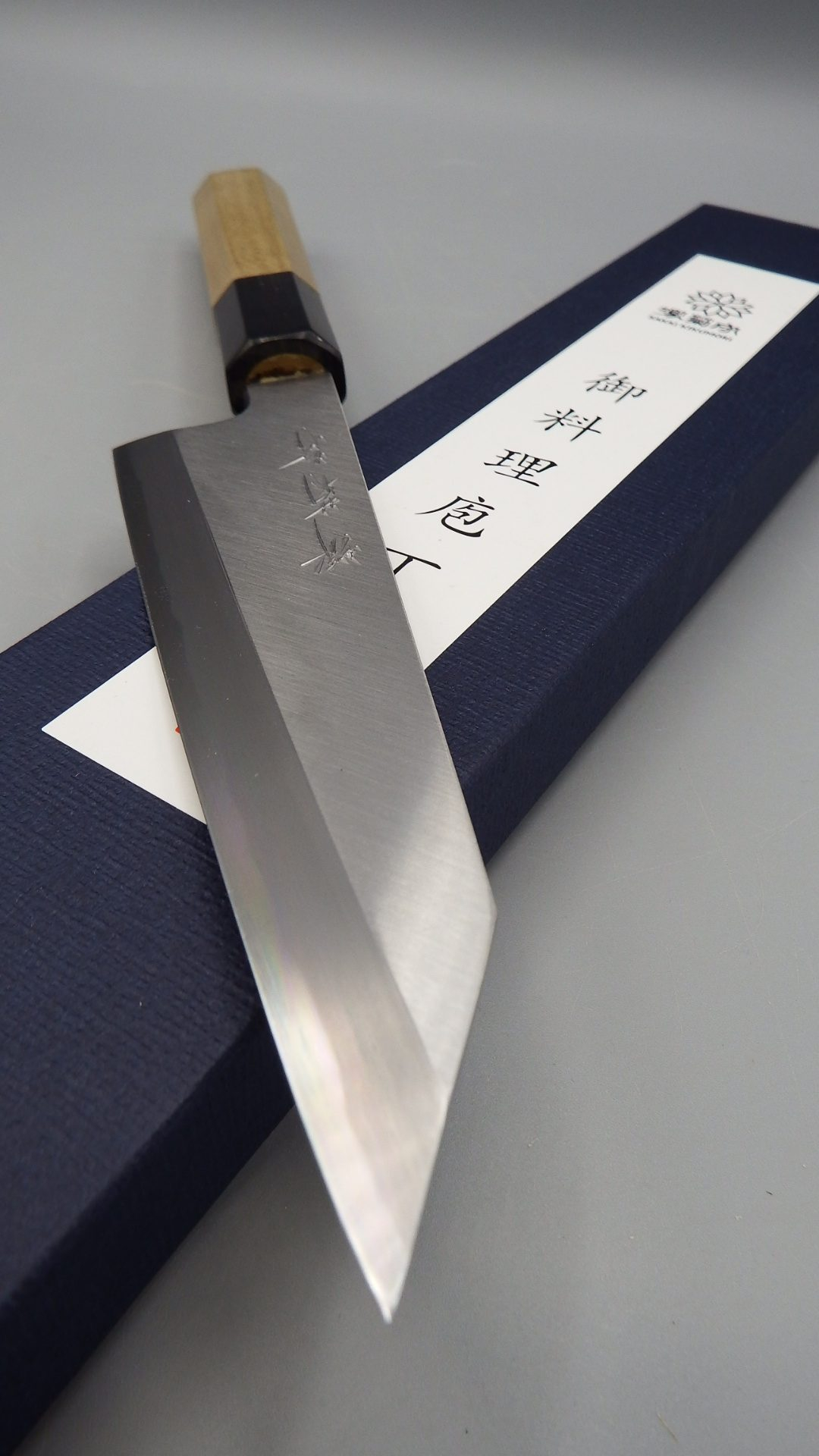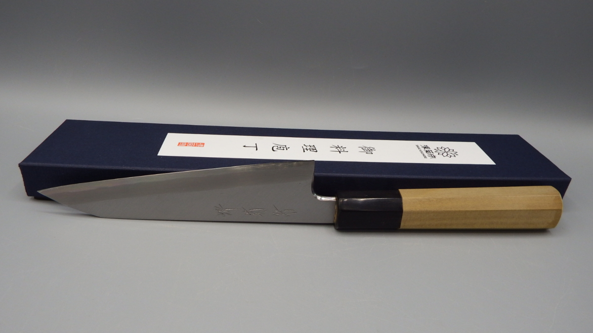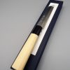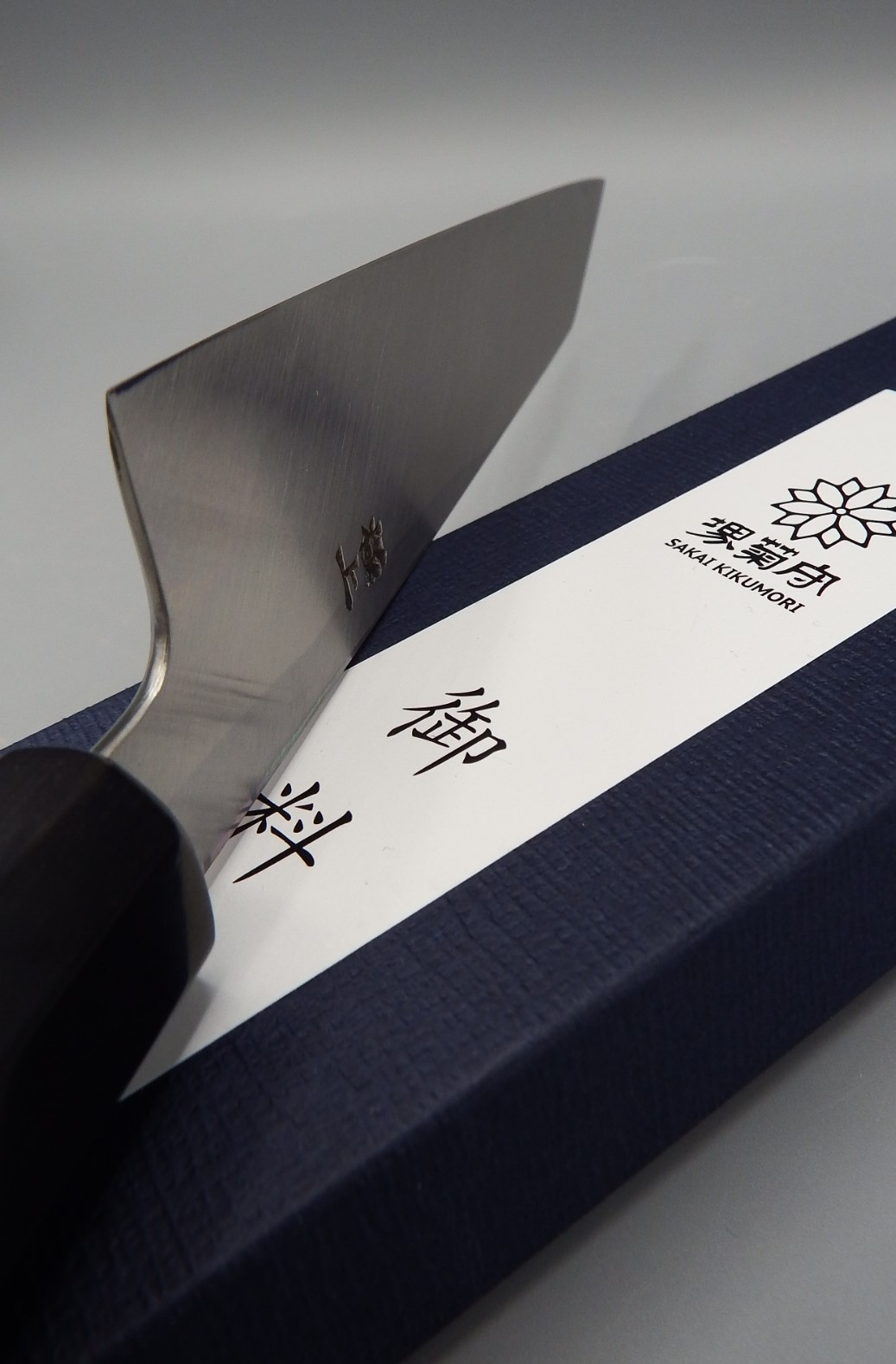 Brand: Sakai Kikumori ComparaSakai Kikumori Wa Honesuki è un coltello kataba (con affilatura asimmetrica) per destrimani che presenta il tradizionale manico in legno di magnolia con collare in corno di bufalo d’acqua.