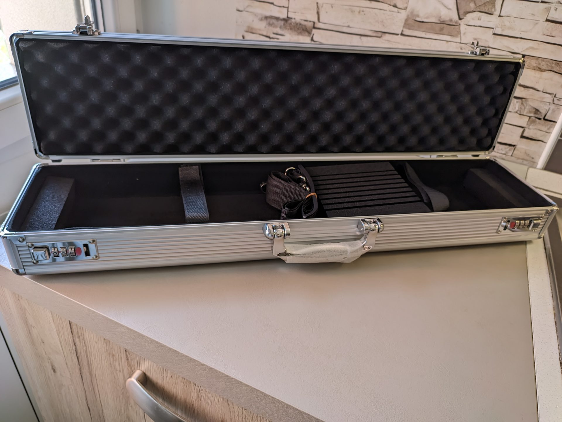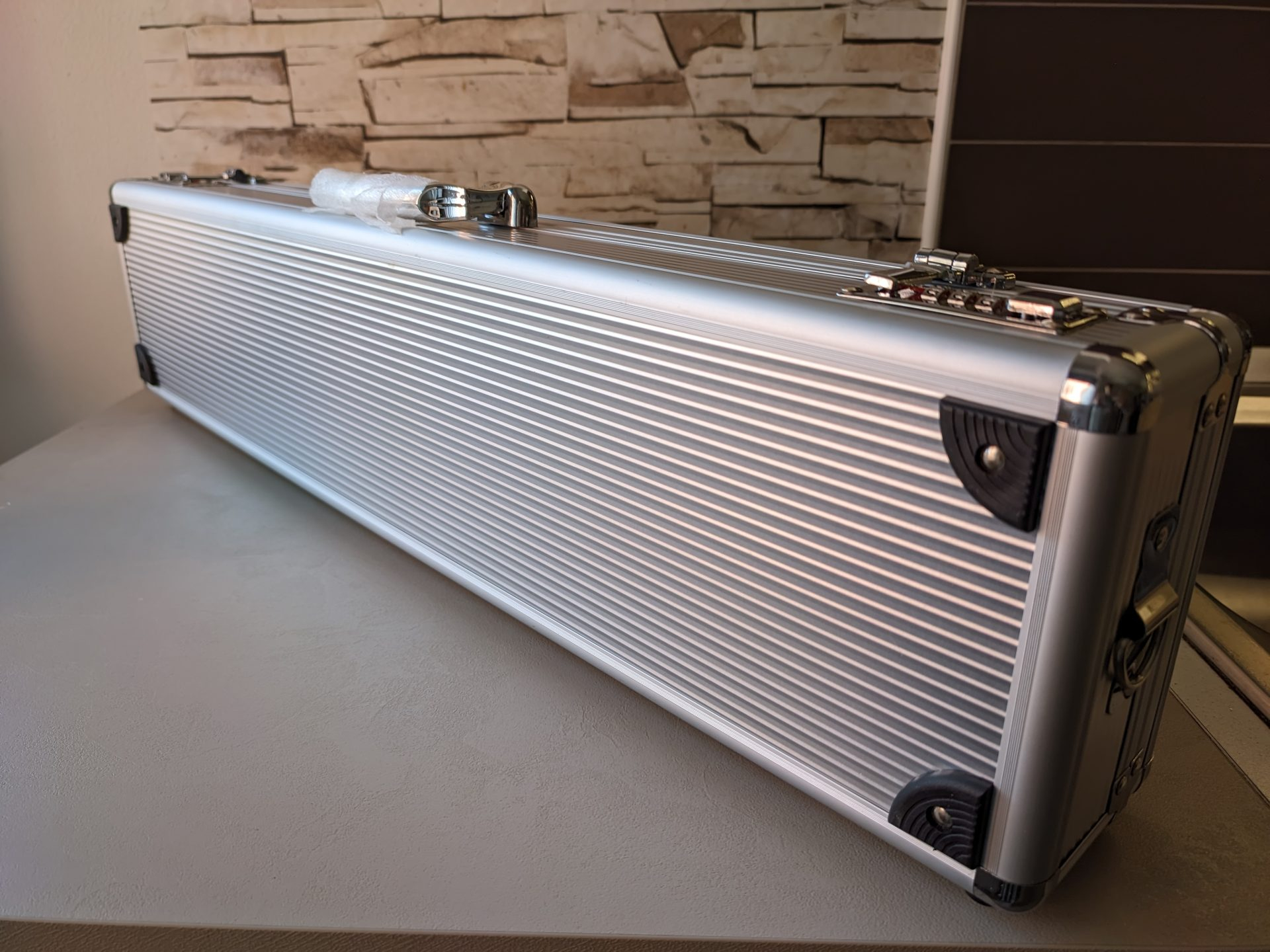 Brand: Alikan ComparaValigia rigida porta coltelli realizzata in alluminio durevole di alta qualità, resistente all’usura e ai danneggiamenti. L’interno del coperchio è rivestito di spugna ondulata removibile; rimuovendola è possibile utilizzare gli elastici fissati al coperchio come vano porta-utensili. La valigia è dotata di cinture a velcro per bloccare i coltelli e di alloggiamenti ferma lama registrabili. È munita di apertura a scatto e di chiusura con combinazione ed è fornita di tracolla regolabile. La valigia è disponibile in due colori opzionabili: silver (argento) e black (nera).
