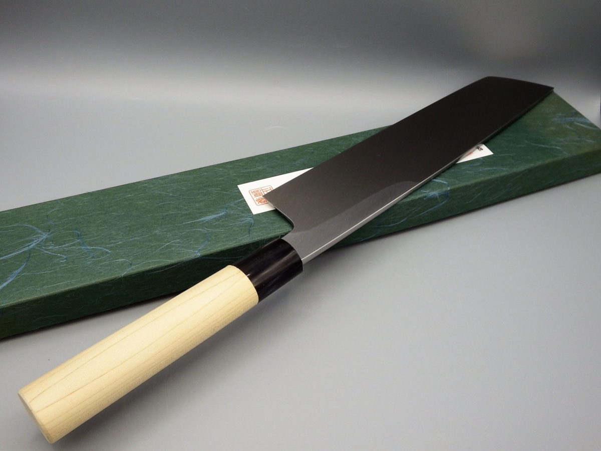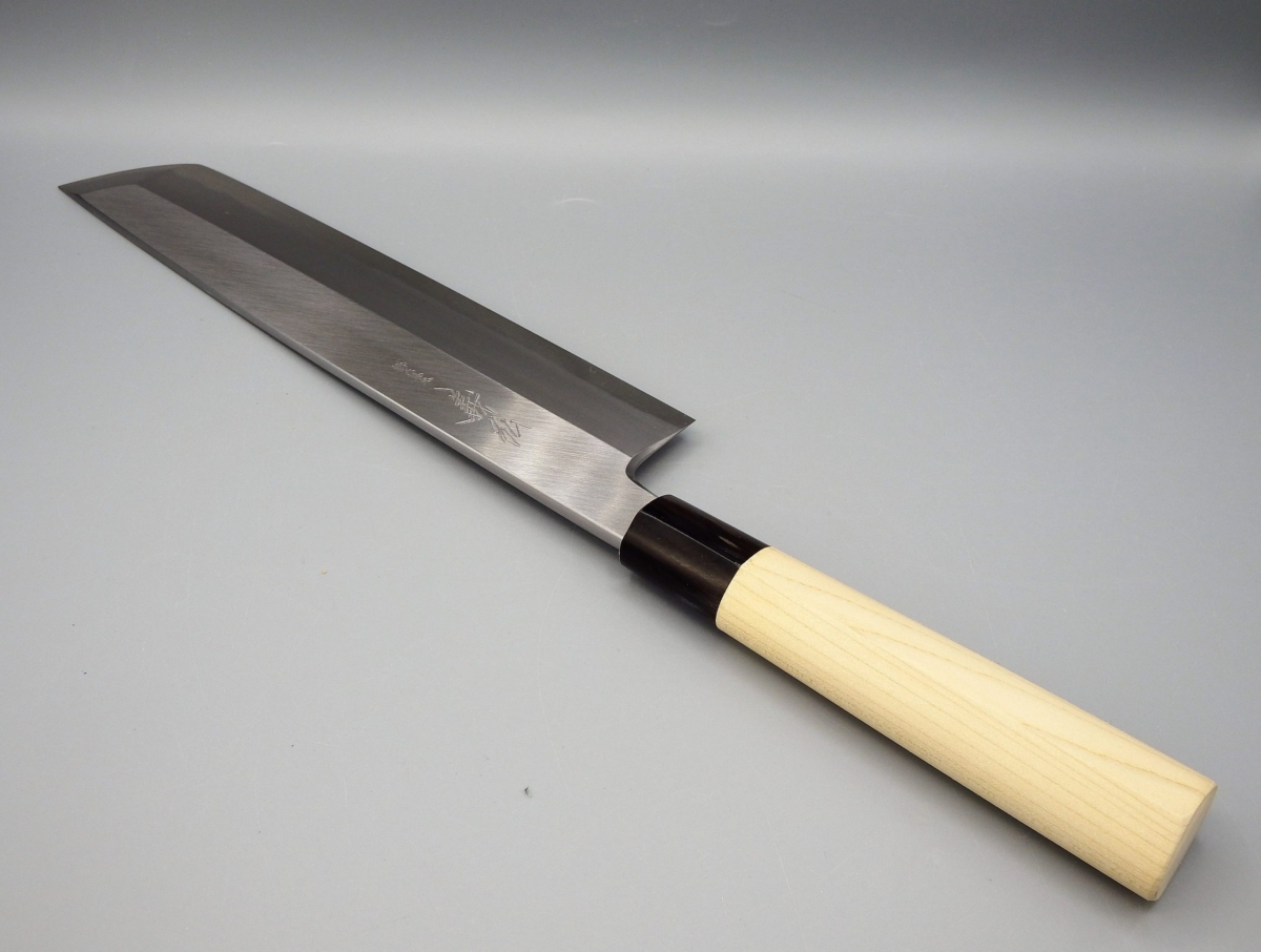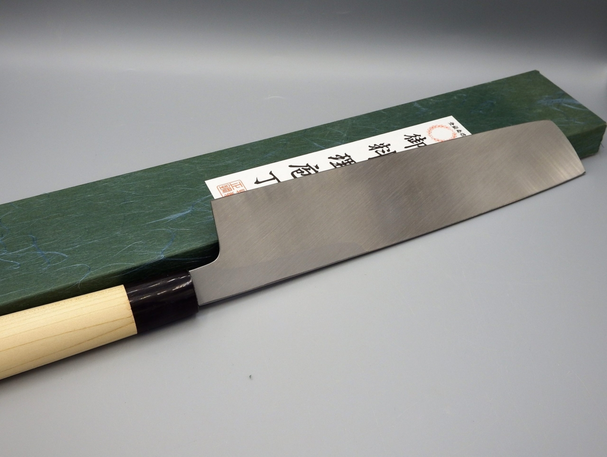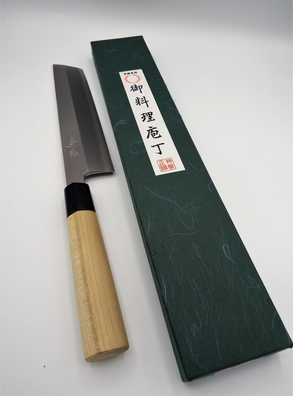 Tra gli acciai al carbonio della serie YSS (Yasugi Specialty Steel) prodotti dalla Hitachi, l’acciaio shirogami#2 è il più utilizzato dai fabbri giapponesi. È un acciaio che si affila facilmente ed in breve tempo, raggiungendo capacità di taglio insuperabili. Si precisa che la punta dell’Hamo-kiri non è affilata. Il coltello infatti si utilizza prevalentemente con un movimento tap-chop (dall’alto verso il basso).