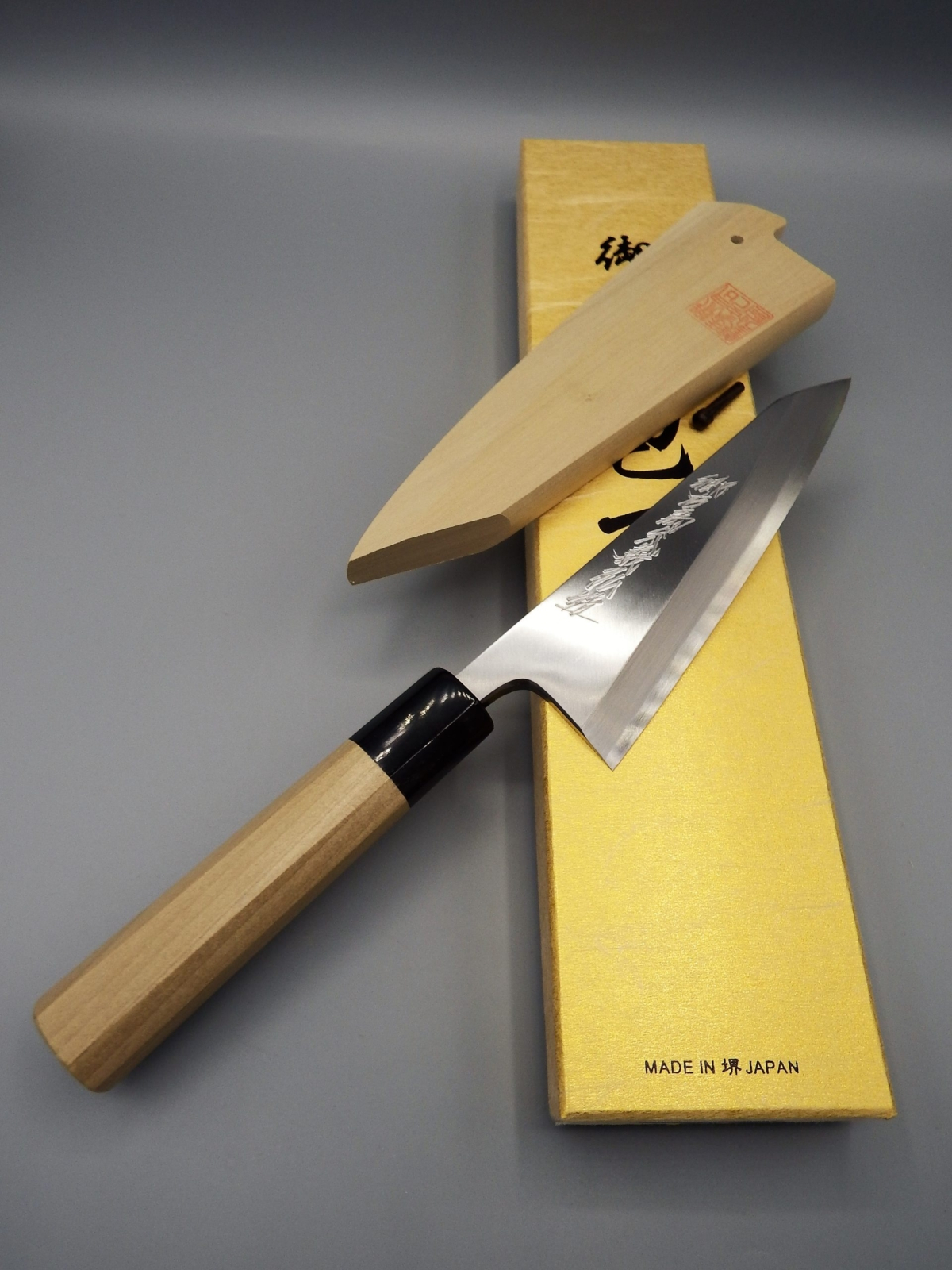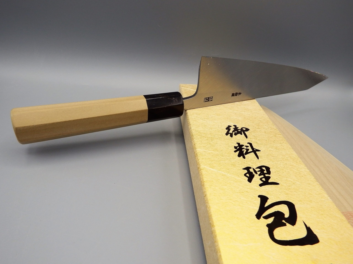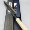 Brand: Yoshihiro ComparaIl Garasuki è un coltello tradizionale giapponese particolarmente adatto al disosso del pollame e delle carni in generale. Ha una lama molto robusta e appuntita, ideale per separare la carne dalle ossa con precisione chirurgica. Indicato sia per piccoli volatili che per grandi tagli di bovino, la lama è in acciaio giapponese shirogami#2. Questa versione presenta il tradizionale manico in legno di magnolia (Wa prima del nome indica proprio questa caratteristica). Per l’affilatura si consiglia di non spingersi oltre una pietra di grana #3000; eventualmente si può arrivare fino ad una #6000, per eseguire tagli particolarmente delicati. Il coltello è disponibile in due misure opzionabili 150 e 180 mm.