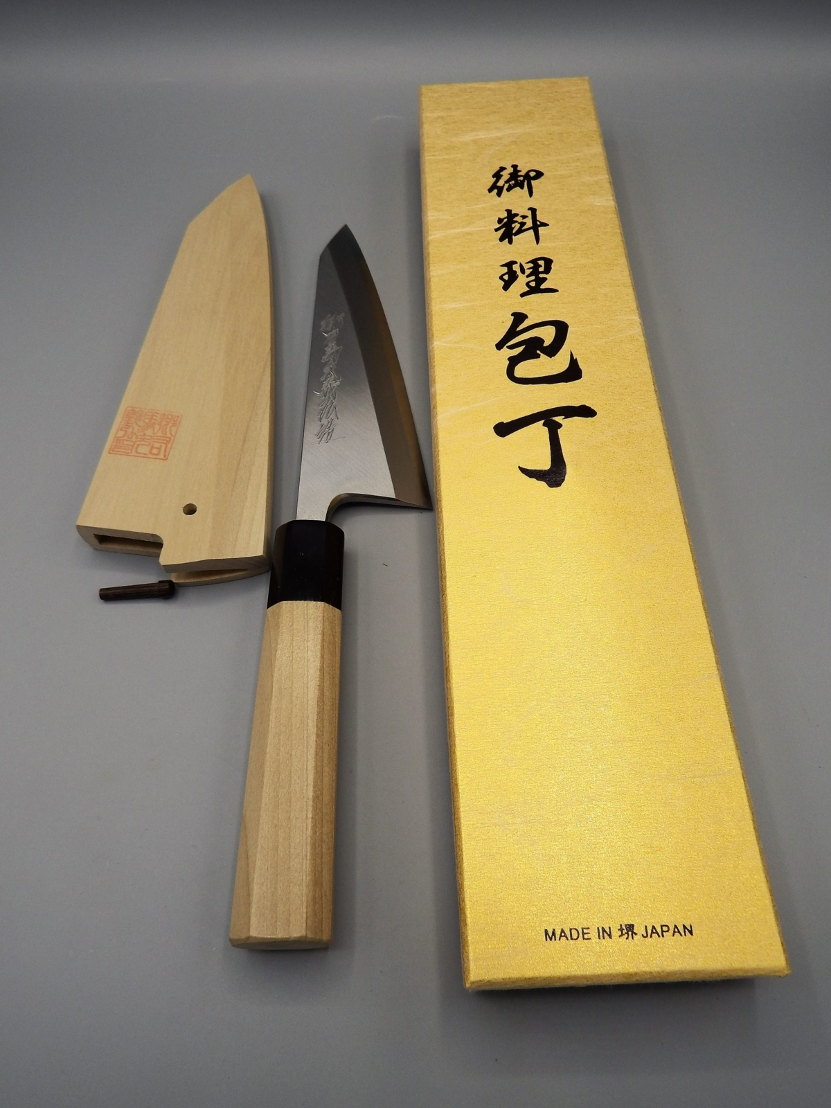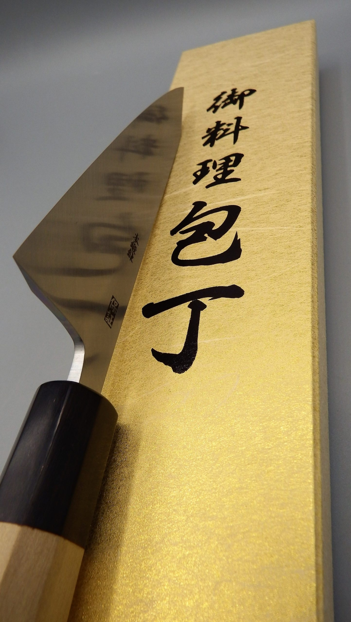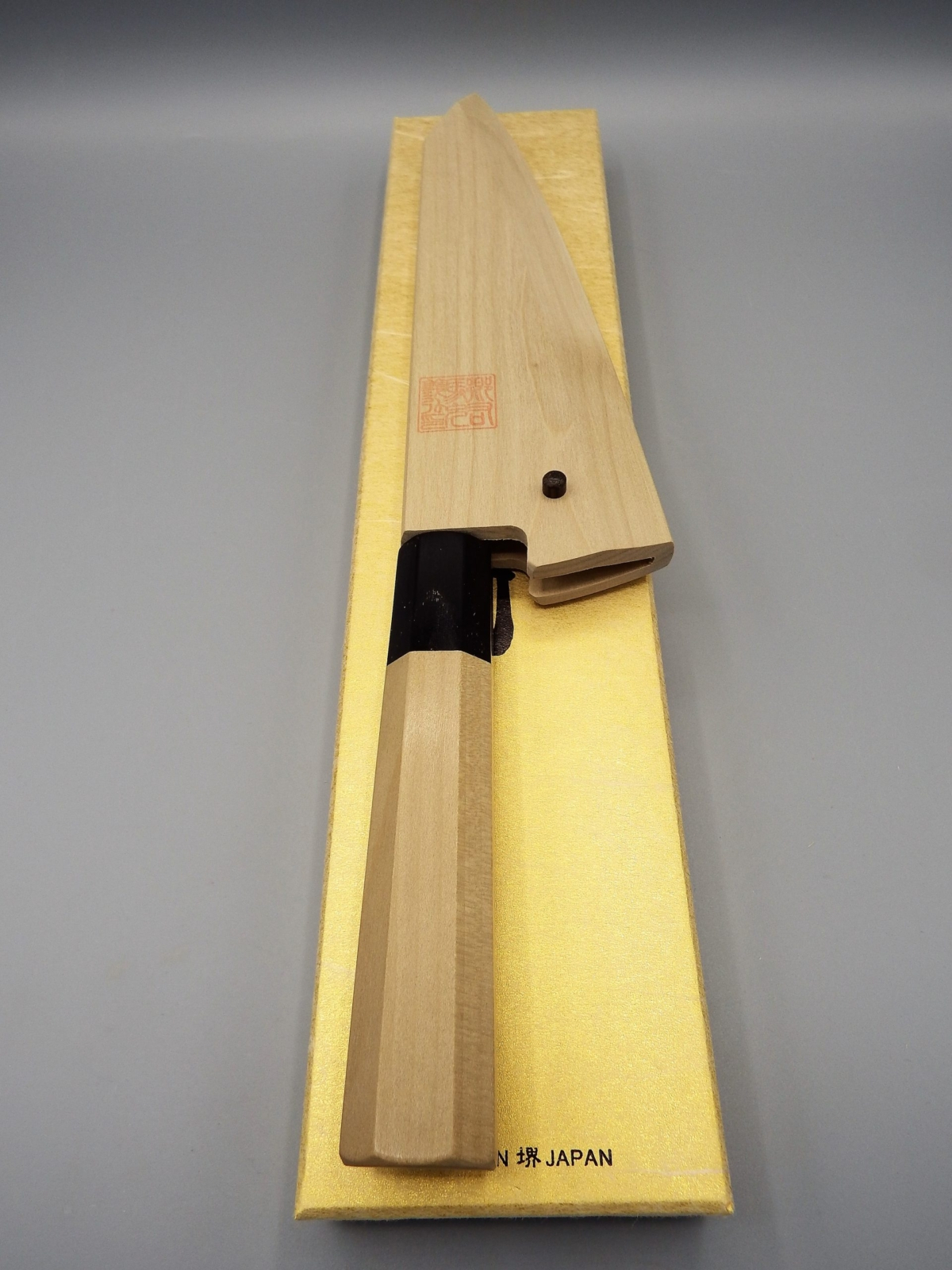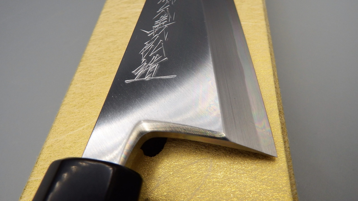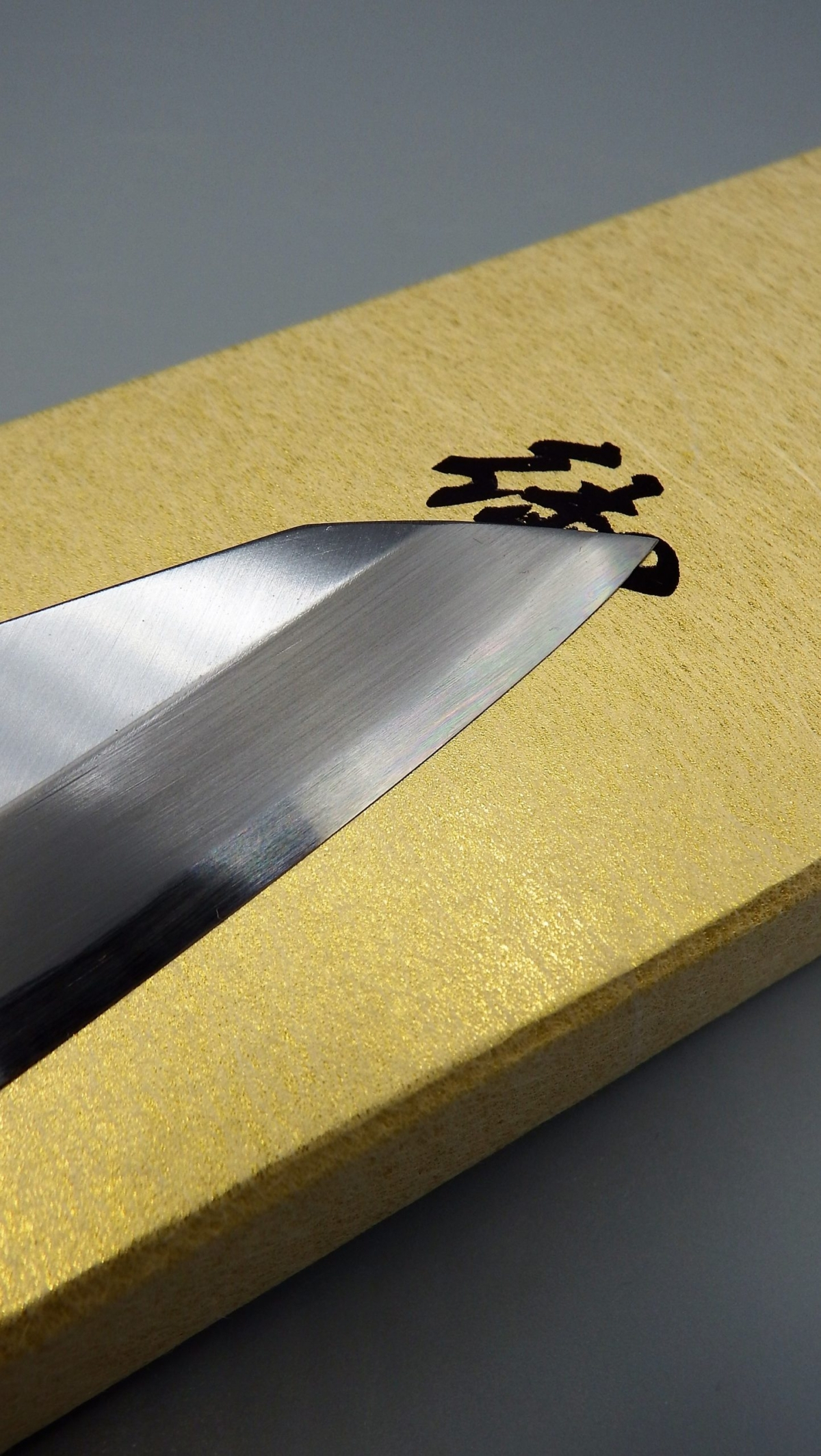 Essendo un coltello in acciaio al carbonio, è sensibile all’ossidazione. Si raccomanda quindi di pulirlo spesso (con una spugna o panno umido) durante l’utilizzo e di asciugarlo accuratamente prima di riporlo a fine lavoro.