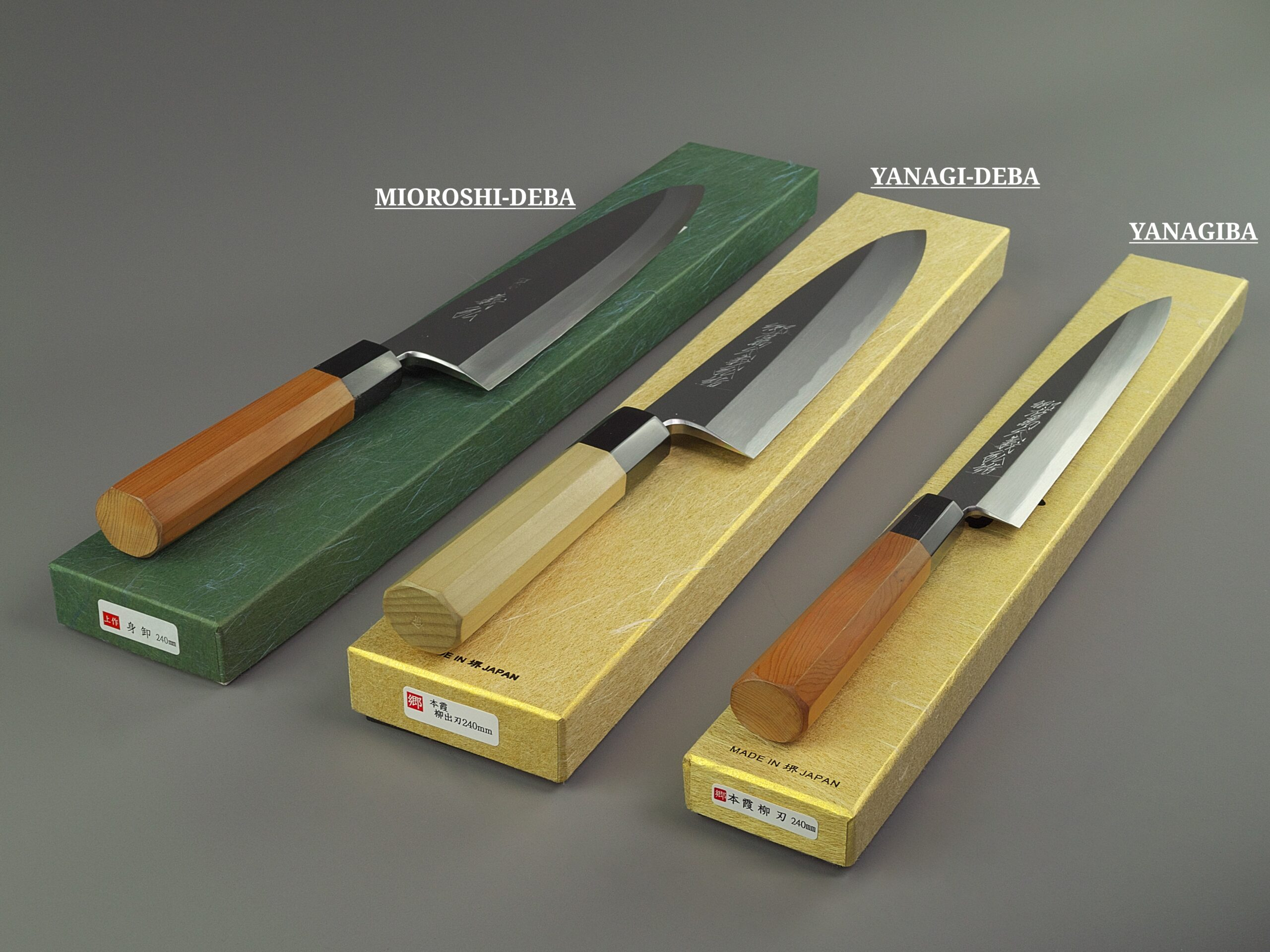 Lo Yanagi-deba è probabilmente il coltello tradizionale giapponese meno conosciuto. Esattamente come il Mioroshi-deba, combina la forma di Yanagiba e Hon-Deba. Rispetto al Mioroshi-deba, che somiglia più al Deba, lo Yanagi-deba, è più simile allo Yanagiba (v. ultime due foto con Mioroshi Deba, Yanagi-deba e Yanagiba a confronto). La forma è slanciata, maneggevole, ma al tempo stesso robusta. Lo Yanagi-deba è perfetto per filettare pesci di tutti i tipi, soprattutto per chi preferisce usare una lama più affusolata. Altrettanto efficace nel taglio del pesce per preparazioni come suhi e sashimi. In Giappone è usato nei ristoranti più tradizionali, lontani dalle grandi città oppure nei mercati ittici.