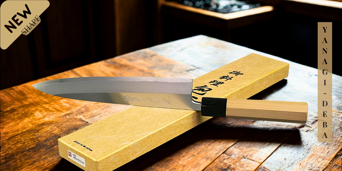 Come il Mioroshi-deba, combina la forma di Yanagiba e Hon-Deba. Rispetto al Mioroshi-deba, che somiglia più al Deba, lo Yanagi-deba, è più simile allo Yanagiba. La forma è slanciata, maneggevole, ma al tempo stesso robusta. Lo Yanagi-deba è perfetto per filettare pesci di tutti i tipi, soprattutto per chi preferisce usare una lama più affusolata.
